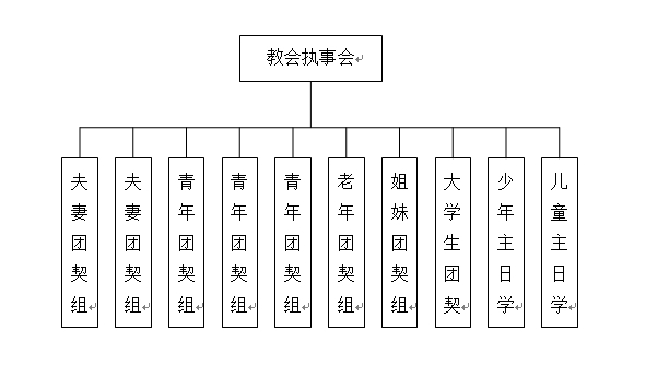 除了上述功能之外,教会信息管理系统必须支持教会的成长。信息管理系统可以支持纵向和横向两种成长两类。纵向成长指单独一个教会人数的持续增长,对于纵向发展的教会,信息管理系统拥有灵活的扩展性,可以根据教会的规模随时调整,增减功能和板块。横向成长指教会始终保持一个不变的规模结构。教会成长到一定规模后,分裂为两个独立的教会。例如,三级结构的百人规模教会(如:每组十人,共有十组的百人规模教会),当教会规模发展到接近两百人时,完全分裂成两个独立的三级结构的百人规模教会。同样信息管理系统则可分开两个互不相干的独立系统,支持各自的教会运作。笔者更倾向于教会的横向成长繁殖,这样可以避免由于过度集权而带来的管理隐患。就国内目前的环境而言,三级结构不超过百人规模的教会是最适合的。其好处在于:第一,各种功能的小组团契都可以建立起来,便于以社区为单位来拓展(如图一所示);第二,便于整个教会的统一活动,百人以内规模的活动相对容易组织,如组织营会,圣诞聚会等;第三,这个规模的教会完全可以支持2、3名全职事工,各执事功能也基本可以配备齐全,管理幅度适中。