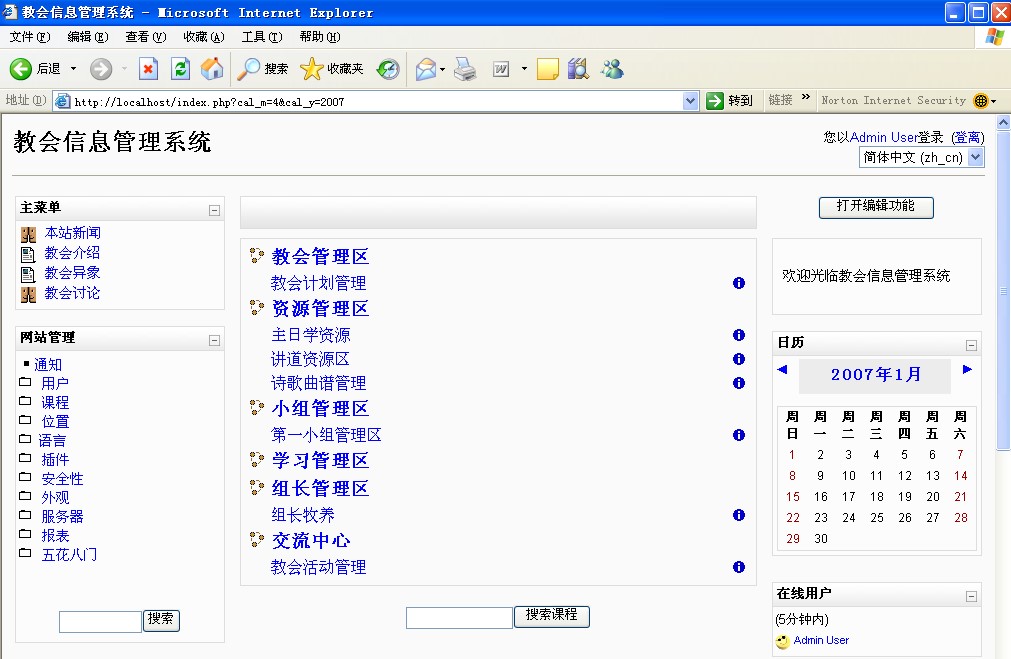 图 二:利用Moodle构建教会信息管理系统页面图例