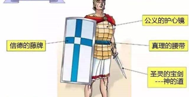“神所赐的全副军装”(τὴν πανοπλίαν τοῦ θεοῦ,原文直译:“神的全副军装”)是一个生动的比喻,只出现在以弗所书6:11和6:13中,而在罗马书13:12中被称为“光明的兵器”,用来对付这黑暗世界的统治者(6:12)。保罗的思想可能来自于罗马帝国的士兵形像。当时他被监禁在罗马城,随时可以见到穿戴全副军装的罗马士兵。他们戴着头盔,胸前挂着护心镜,腰系皮带,脚穿皮制凉鞋,左手拿着盾牌,右手拿着短剑。但保罗的思想更可能被犹太文化所影响。两约之间的犹太智慧文学中出现了“神的军装”的概念(如:所罗门智慧书5:17),旧约以赛亚书也多次提到“神的军装”(参赛11:5,52:7,59:17)。以赛亚书中提到的军装属于耶和华(赛59:17),穿戴在弥赛亚身上(赛11:5)。保罗虽然不是直接引用旧约,但却是清晰地暗指以赛亚书。也就是说,保罗希望以弗所人穿戴的是基督的军装。