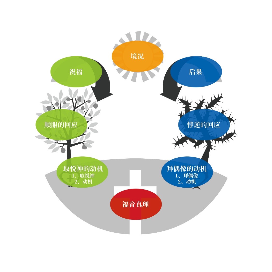 若向外探寻,导览图的几个版块与基督教伦理学的基本要素——处境、生命(包括良心)、真理——有对应关系;熟悉傅瑞姆“三视角理论”的读者,也可对这两部分作对应思考。鉴于篇幅和论述主题的限制,笔者不多作展开。